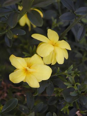 Compared to the more common Carolina Jessamine (Gelsemium sempervirens), which has a similar vining habit and yellow flowers, Primrose Jasmine is a shrub rather than a true vine. Unlike Carolina Jessamine, which has toxic properties, Primrose Jasmine is safe to plant in areas frequented by pets and children. However, it lacks the strong fragrance associated with some jasmine species, so it is chosen more for its ornamental value than for scent.