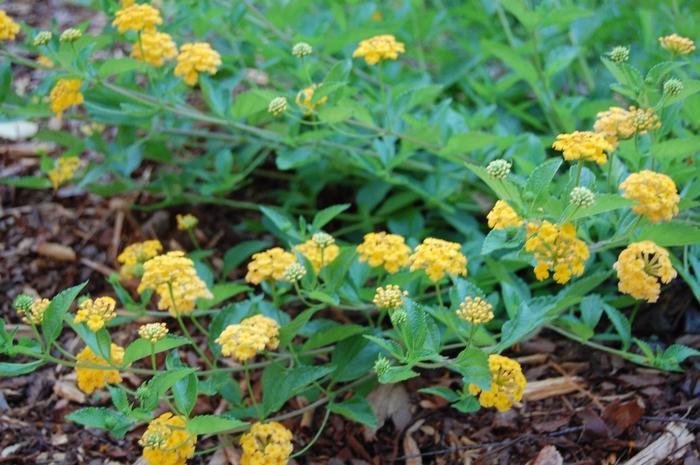 Low-growing, spreading Lantana varieties in Gold, Purple, and White are herbaceous perennials that serve as versatile groundcovers in Texas landscapes. Reaching a mature height of 12 to 24 inches and spreading 4 to 6 feet wide, they provide excellent ground coverage. Thriving in full sun, they perform exceptionally well in hot and dry conditions, making them ideal for central, south, and coastal Texas. They tolerate a wide range of soil types, including poor, sandy, or rocky soils, but they need good drainage to prevent root rot. These varieties are highly drought-tolerant once established and flourish with minimal maintenance, showcasing vibrant blooms from spring through fall.