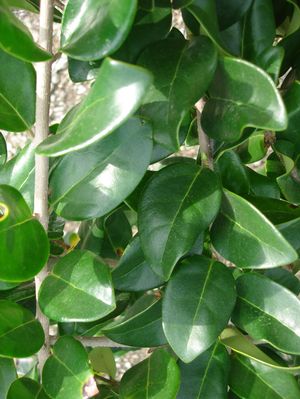 Waxleaf Ligustrum is often confused with Ligustrum lucidum, with common names of Japanese Ligustrum, Japanese Privet, and Glossy Privet -- but they differ in several key ways. Japanese Ligustrum grows significantly taller, reaching 20 to 30 feet, and is more tree-like, whereas Waxleaf Ligustrum remains more compact and shrubby. Additionally, Japanese Ligustrum has larger, thinner leaves with a more pronounced sheen, while Waxleaf Ligustrum has thicker, more rigid leaves. Both plants produce similar flowers and berries, but Japanese Ligustrum is considered more invasive due to its aggressive reseeding and rapid spread.
