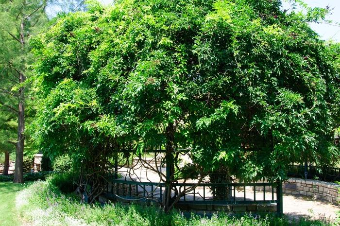 Semi-evergreen vine that has little resemblance to the Chinese Wisteria; dark burgundy flowers appear throughout the summer, while the vine grows only 20 feet in length. Will hold leaves in warmer winters.
