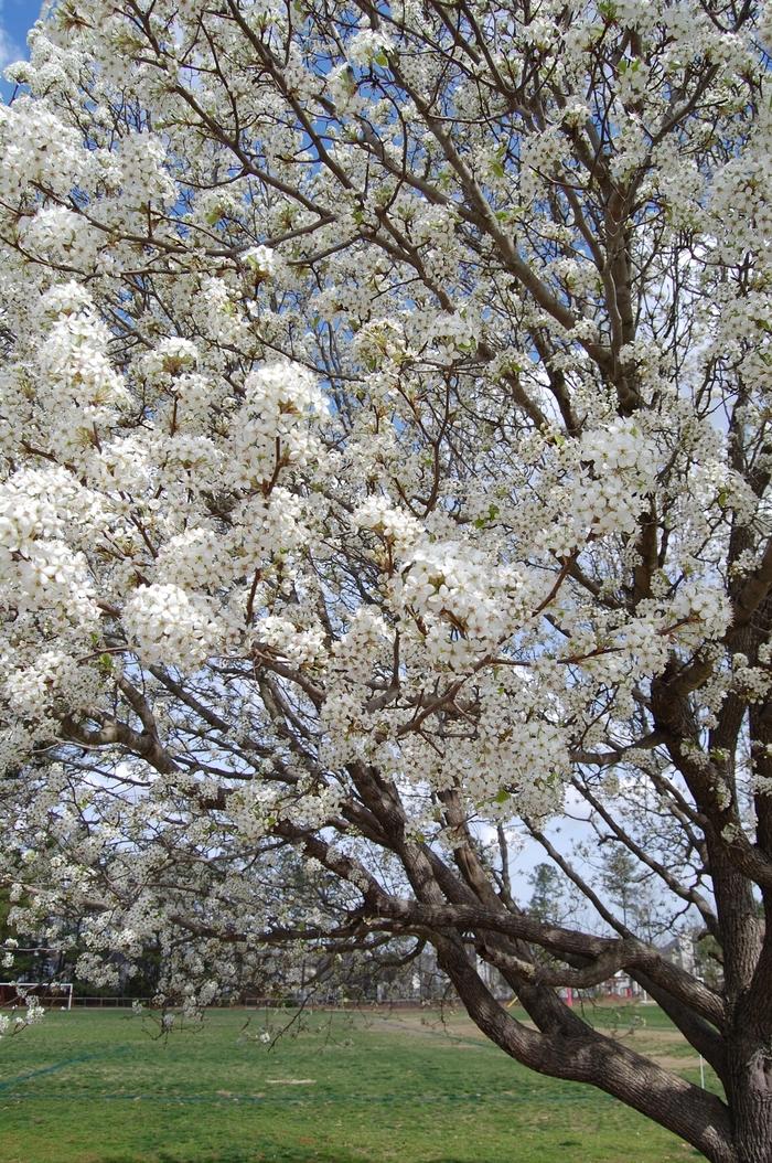 The Bradford Pear is a popular ornamental tree known for its spring blooms and fall color. ‘Bradford’ differs from the others in that it’s fast growing, forming a natural round to teardrop shape. It’s popular in cities as it tolerates many soil types, air pollution, and drought.