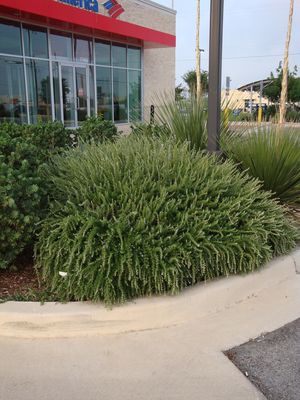 In the Texas landscape, trailing rosemary is most often used as a groundcover, spiller over walls or containers, or along slopes where good drainage is essential. It typically reaches 1–2 feet tall and spreads 4–6 feet wide, forming a dense mat over time. When planted in mass, spacing 3–4 feet apart allows plants to knit together without crowding. Pale blue to lavender flowers appear primarily in late winter through spring, with lighter repeat blooming possible during mild seasons.