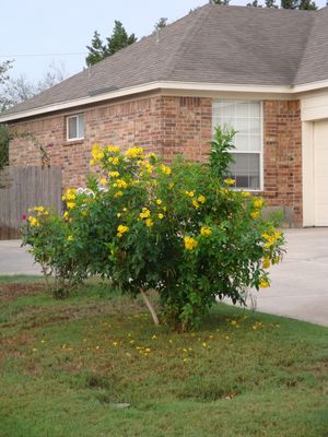 Gold Star Esperanza is a standout cultivar of the Tecoma stans, admired for its compact form and prolific bloom production. This hardy, heat-tolerant shrub thrives in Texas landscapes, especially in areas with hot summers. Known for its vibrant yellow, trumpet-shaped flowers that bloom from spring through fall, Gold Star Esperanza adds a tropical flair to gardens and is a popular choice for pollinator-friendly plantings. While not a Texas native, this cultivar is widely used for its adaptability to various landscapes and its long flowering season.